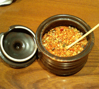 御来店のさい、各テーブルにある七味をご賞味ください。 こだわりの手作りです。市販の物じゃ出せない風味があります。