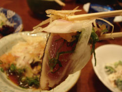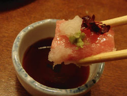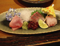 淡路、明石、和歌山近海で獲れる魚介類は、ぜひとも召し上がっていただきたい一品です。同級生が営んでいる市場の魚屋と密に連絡を取り合いながら、常に良い食材を提供させていただいております。